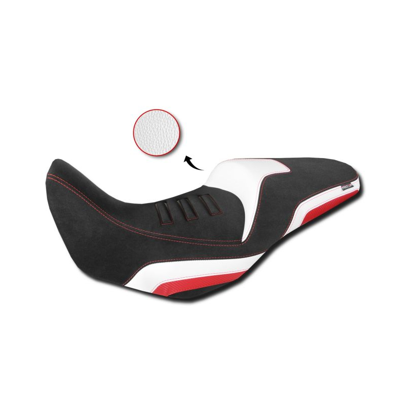 Der Sitz fügt sich perfekt in die Ästhetik Ihres Motorrads ein, dank seiner 5 Farbvarianten: Blau, Dunkelblau, Rot, Weiß und Triple Black.