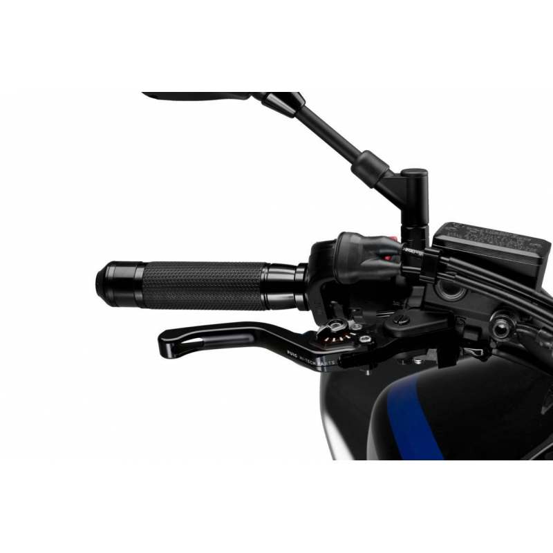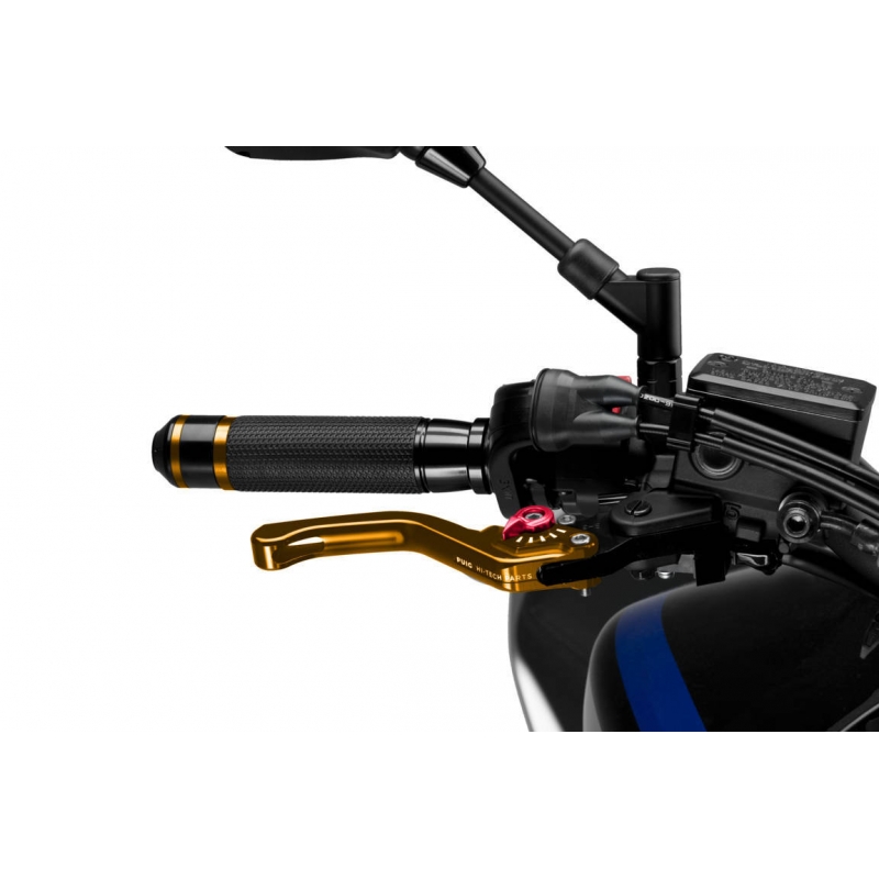 Sporty and ergonomic design in **machined aluminum** with multiple forms (short, folding, extendable) and customizable colors for the lever and 6-position adjustment wheel (blue, red, black, orange, gold, silver).
