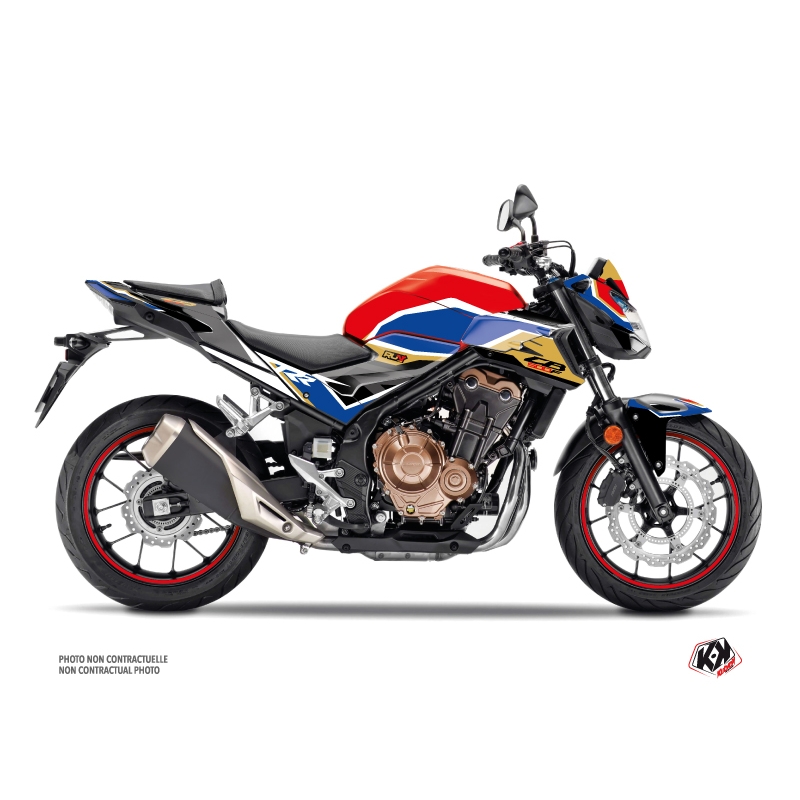 Composed of pieces to apply on the fairings: rear cowl, radiator guard, tank, front face, front fender.
