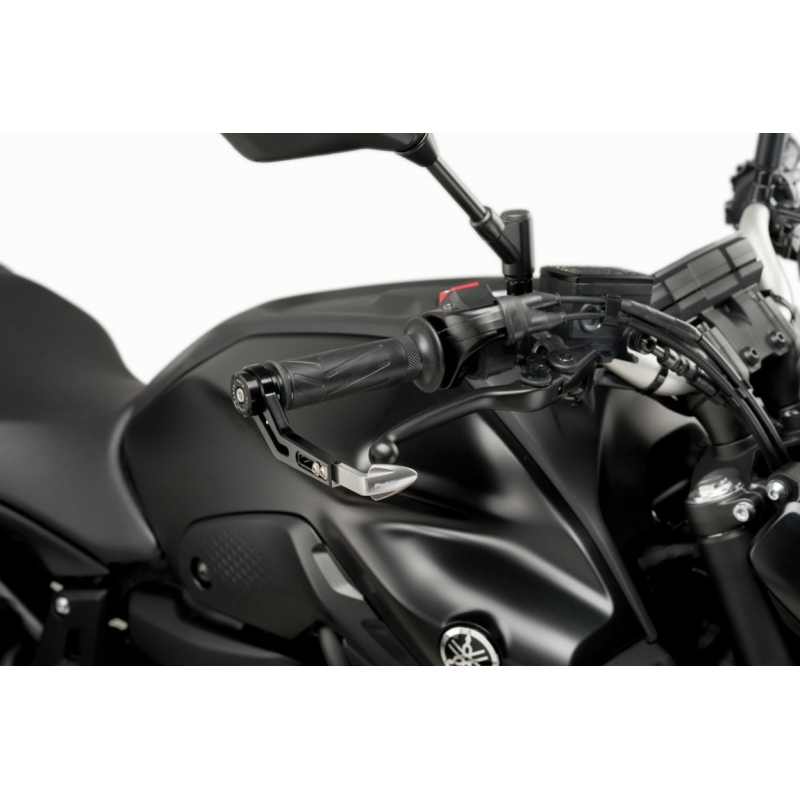 The system is adjustable in two directions: longitudinally and perpendicularly to the handle. It is compatible with both original and Puig levers, but not with handlebar ends/bar-end mirrors.