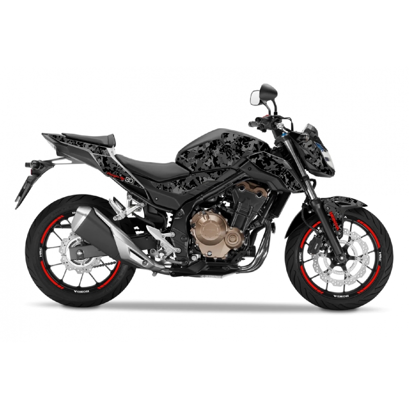 Burn-Out Design Decor Sticker Kit for Honda CB500F from 2016 to 2018.