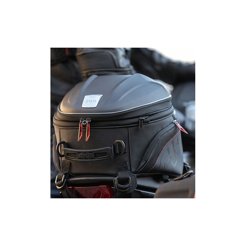 Ideal for daily commuting, this thermoformed saddlebag offers an expandable storage capacity from 22 to 26 liters.