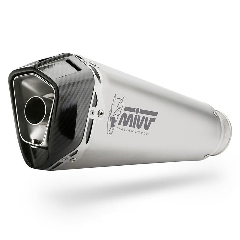 Discover the exhaust silencer Mivv DELTA RACE, designed to enhance the appearance, sound, and performance of your motorcycle.