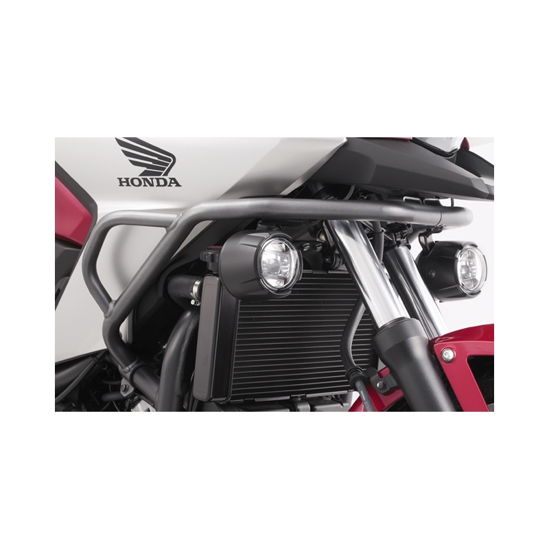 Additional fog lights and mounting kit for CB500X 2019. Enhance rider and motorcycle visibility with powerful LED lighting. Installation is done on Honda engine guards (compatibility with other brands' crash bars is not guaranteed). Genuine Honda accessory.