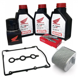 Paquete especial que incluye todo lo necesario para realizar el cambio de aceite del motor de su CB500F, CB500X y CBR500R, a 12000 y 36000 km. Está compuesto por 3 litros de aceite Motul E-Tec 10W30 diseñado específicamente para el motor de su Honda, así como el filtro de aceite original de Honda y la junta de drenaje. Todas las piezas están garantizadas...