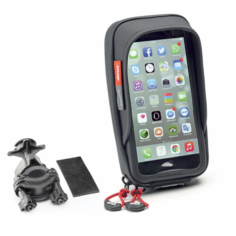 Transporta fácilmente tu smartphone/GPS durante el paseo gracias a este soporte que puede fijarse en los manillares incluso cónicos o en los espejos retrovisores.