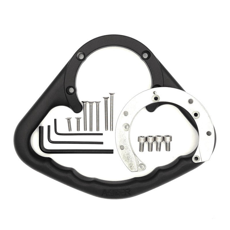 Fabricada en aluminio pintado en negro, se fija fácilmente en los tornillos de la tapa del depósito de la CBR.