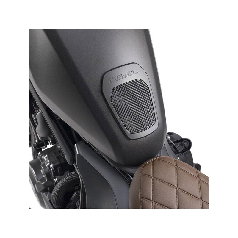 La pieza está diseñada en goma y específicamente para el depósito de la CMX500. El agarre está además logotipado "Rebel" y presenta un diseño de diamante que recuerda al de la silla custom.