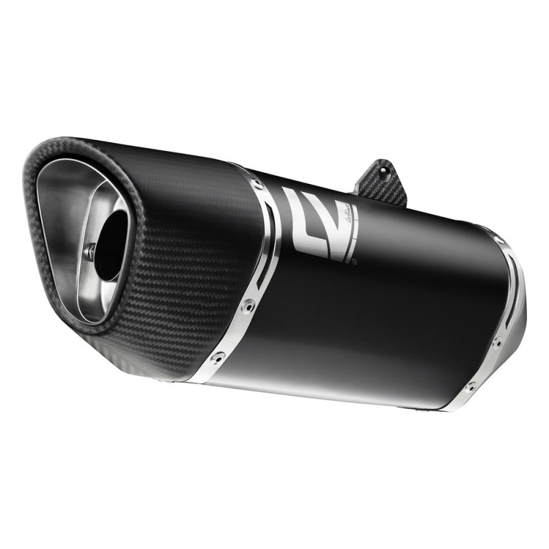 Realizzato in acciaio inox o titanio, offre un notevole risparmio di peso rispetto allo scarico originale. È inoltre dotato di un fondello in carbonio con finitura opaca, che conferisce uno stile decisamente sportivo e aggressivo.
