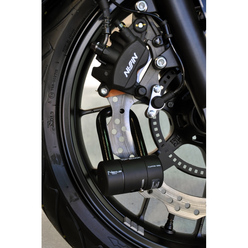 Blocco disco premium a U di produzione francese da Top Block. Con il suo ingombro ridotto, si ripone facilmente sotto una sella. Classe SRA, fornito con due chiavi e una custodia per il trasporto.