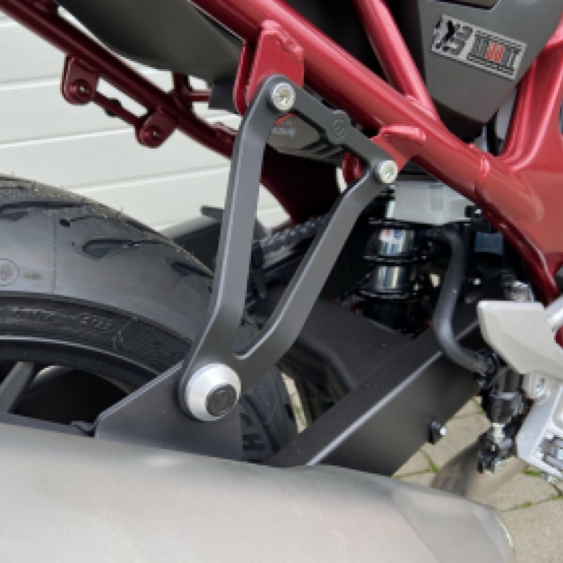 Rimuovi facilmente i poggiapiedi passeggero, mantenendo l'integrità della tua moto, grazie a questo supporto per scarico BRUUDT.