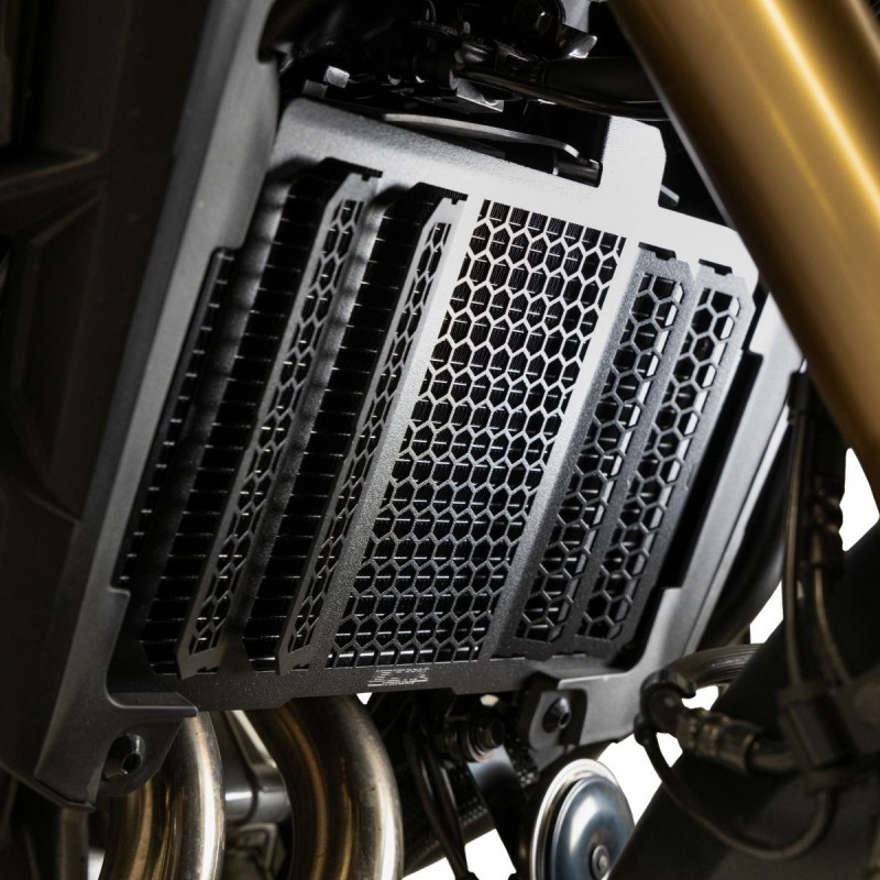 La griglia radiatore è un accessorio essenziale per proteggere la tua moto dagli impatti e detriti della strada.