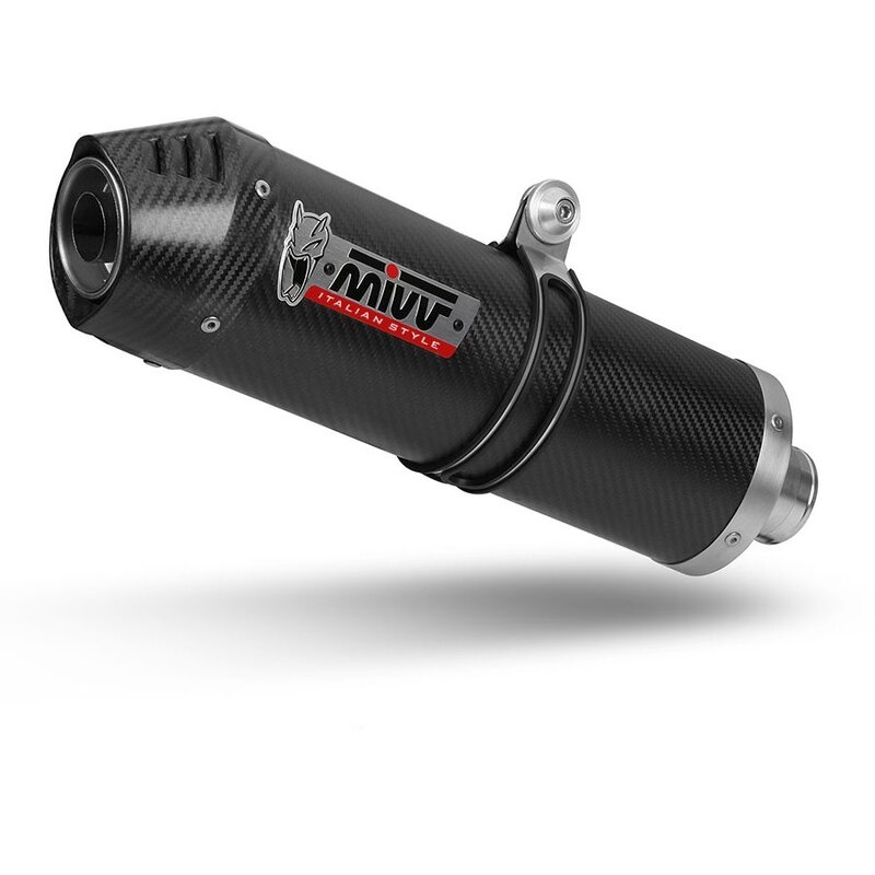 Si caratterizza per un corpo e un terminale in carbonio ad alta resistenza termica. L'uscita dei gas è riconoscibile grazie alle sue fessure aperte che conferiscono al silenziatore un design sportivo.